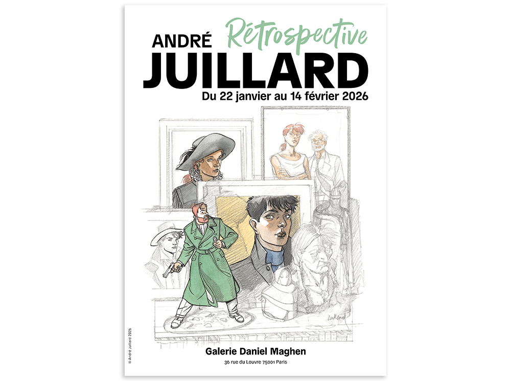 Ne manquez la rétrospective « Une vie à dessiner » consacrée à André Juillard présentée du 22 janvier au 14 février 2026 à la Galerie Daniel Maghen, Paris ! C’est la toute première rétrospective consacrée à ce grand maître de la BD (Grand Prix du Festival d’Angoulême 1996) en hommage à l’artiste disparu en 2024. Organisée en collaboration avec la famille d’André Juillard, le parcours retrace 40 ans de création. 350 œuvres y sont exposées dont les planches, couvertures et illustrations historiques tirées de ses séries et albums cultes : Les 7 Vies de l’Épervier, Plume aux vents, Le Cahier bleu, Après la Pluie, Blake et Mortimer…